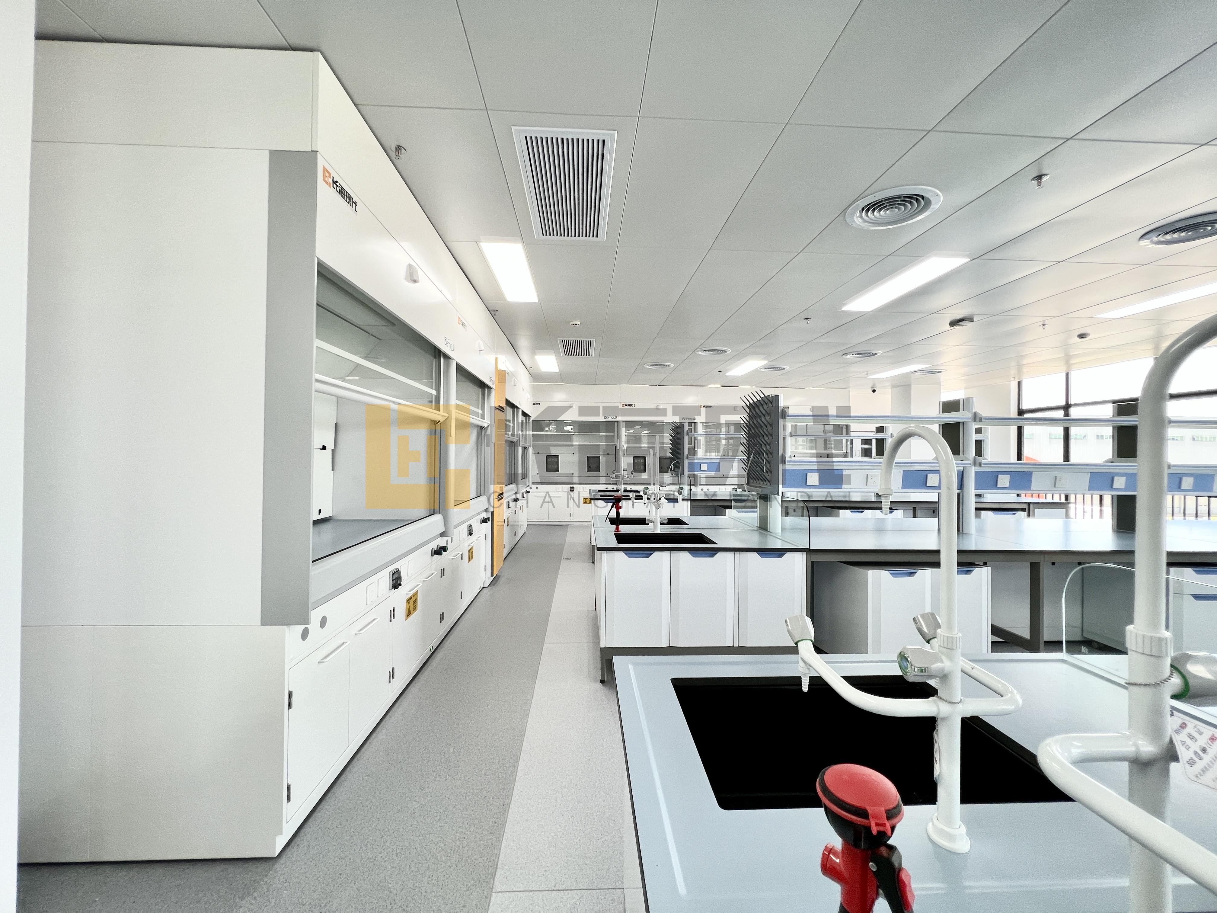 (3) 內襯板、導流板材料為5mm厚陶瓷纖維板,可安裝水嘴、氣嘴、插座等,設有檢修口。導流采用三段式設計,符合BS標準,有效的疏導氣流流通,能避免氣流在通風柜內形成渦流。