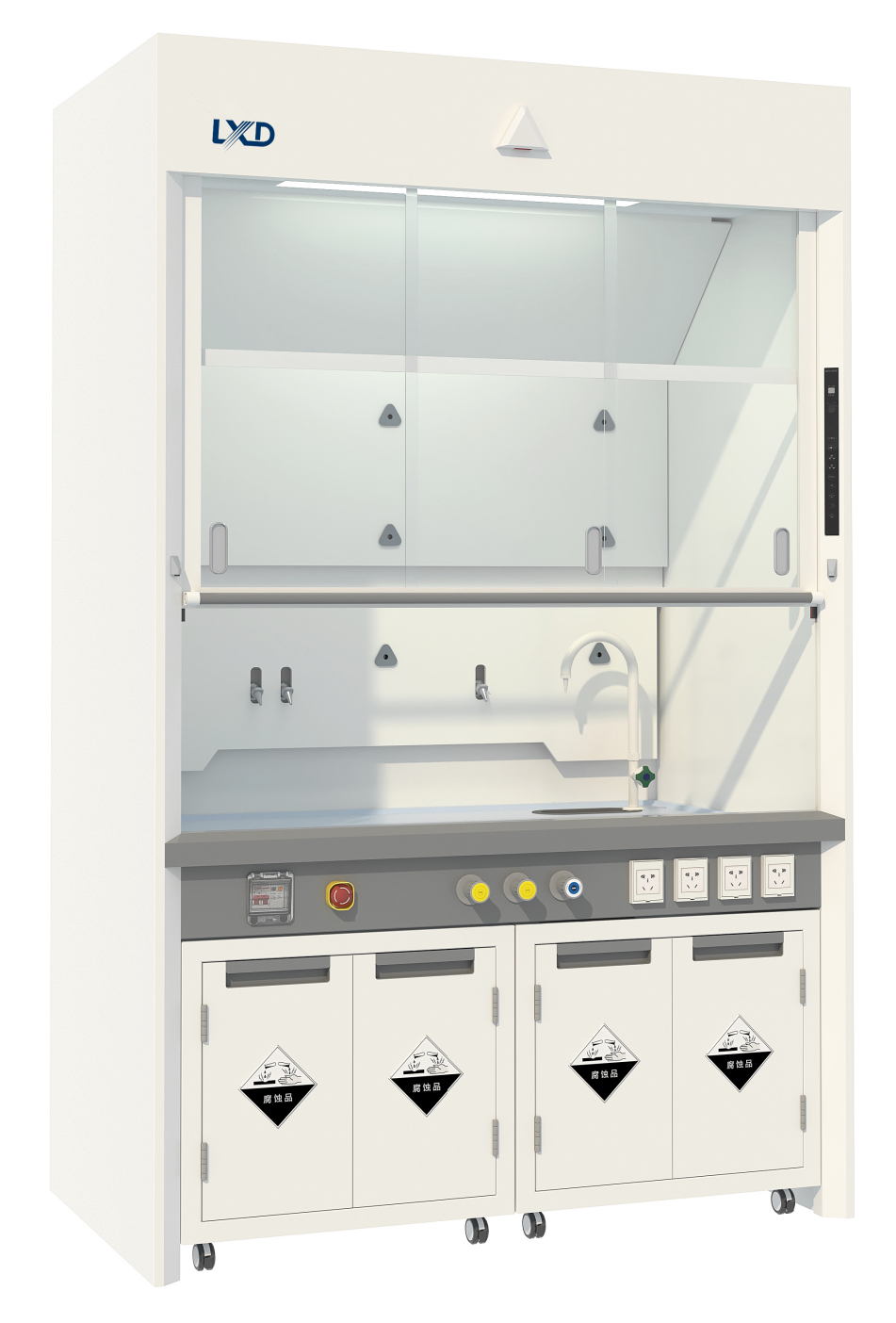 風(fēng)量調(diào)節(jié)閥 + 門高位移傳感器 紅外區(qū)域傳感器 + 語音模塊 蜂鳴報(bào)警功能 底柜:獨(dú)立柜體,帶活動(dòng)輪 電氣:4個(gè)IP55級實(shí)驗(yàn)室專用防水插座 |